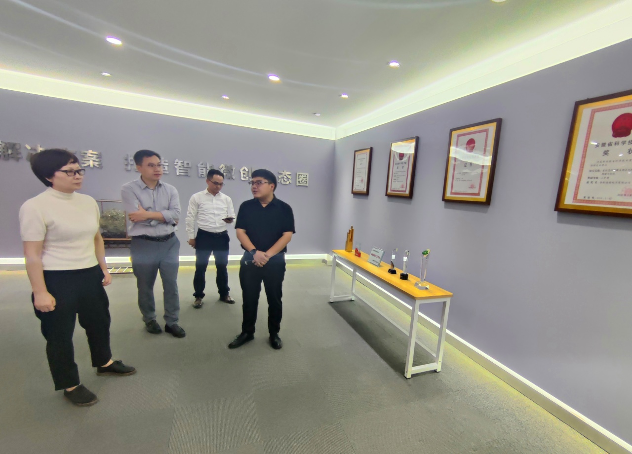 On the same day, the delegation arrived at Hefei Deming Electronics Co., Ltd, a high-tech enterprise focusing on the research, development, production and market operation of intelligent high-end medical equipment with minimally invasive surgery as its core. Its Anhui general manager is the School’s alumnus named LIU Jin, as well as Hefei alumni Zhang Xuenong, Xi Yue, Wang Shuangguo, and Class of 2024 freshman Zhang Yi'an warmly received the delegation of the Business School. They visited Deming Electronics Smart Showroom together. Liu Jin introduced in detail the main products and development status of the company, as well as the outstanding achievements of alumni enterprises in the field of science and technology innovation.